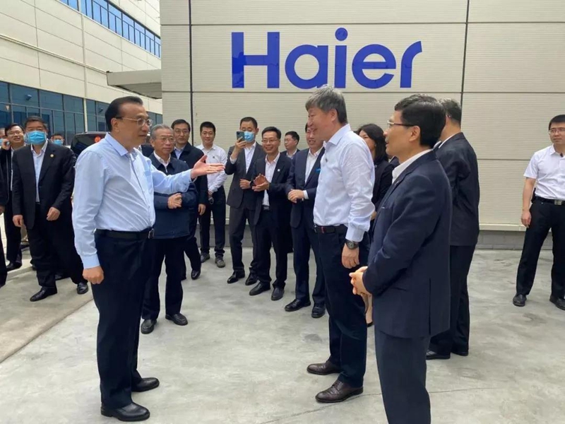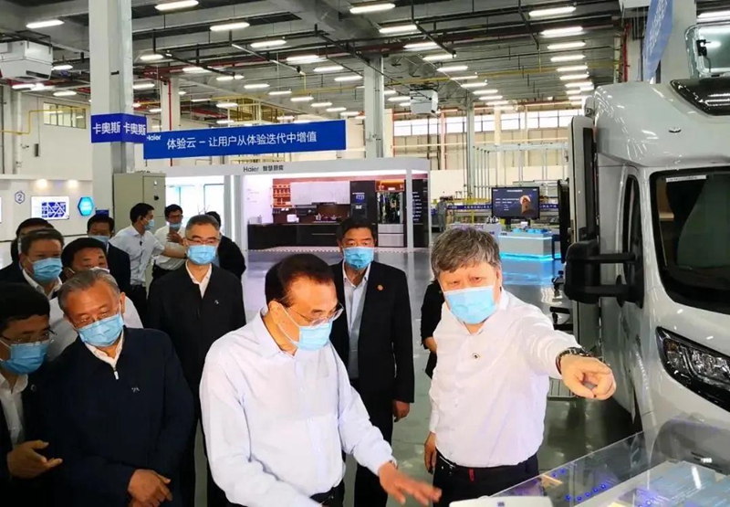 ▲6月2日,李克强总理到海尔视察,听到了海尔工业互联网平台COSMOPLAT的介绍。该平台的综合能源管理部分由研彩新材料科技南通有限公司提供。
